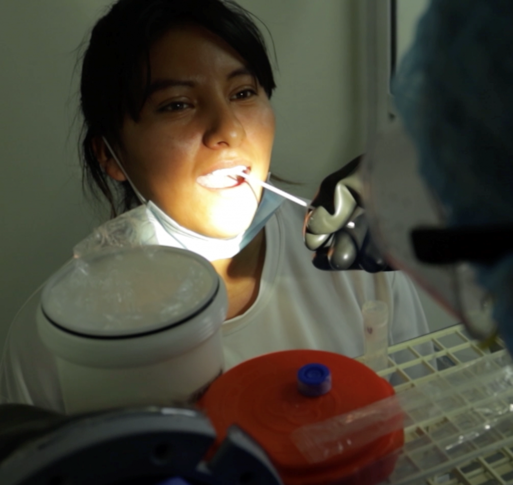 Por medio de dos hisopos especializados, uno nasofaríngeo y el otro faríngeo, se extrae la muestra «generalmente en el nasofaríngeo el paciente tiende a estornudar y se generan muchas expectoraciones, que si no las concentramos en un solo lugar se convierte en un foco de infección», expuso el médico.