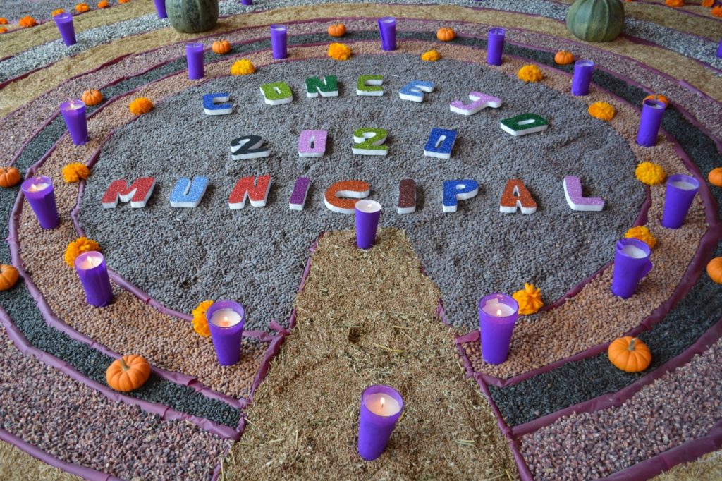 APAN, HGO.- La Coordinación de Educación y Cultura del Concejo Municipal Apan 2020, en conmemoración del tradicional Xantolo presento una ofrenda realizada a base de diversas semillas papel picado y otros productos dieron un realismo al que se vive en la huasteca como es la quema de incienso y copal.