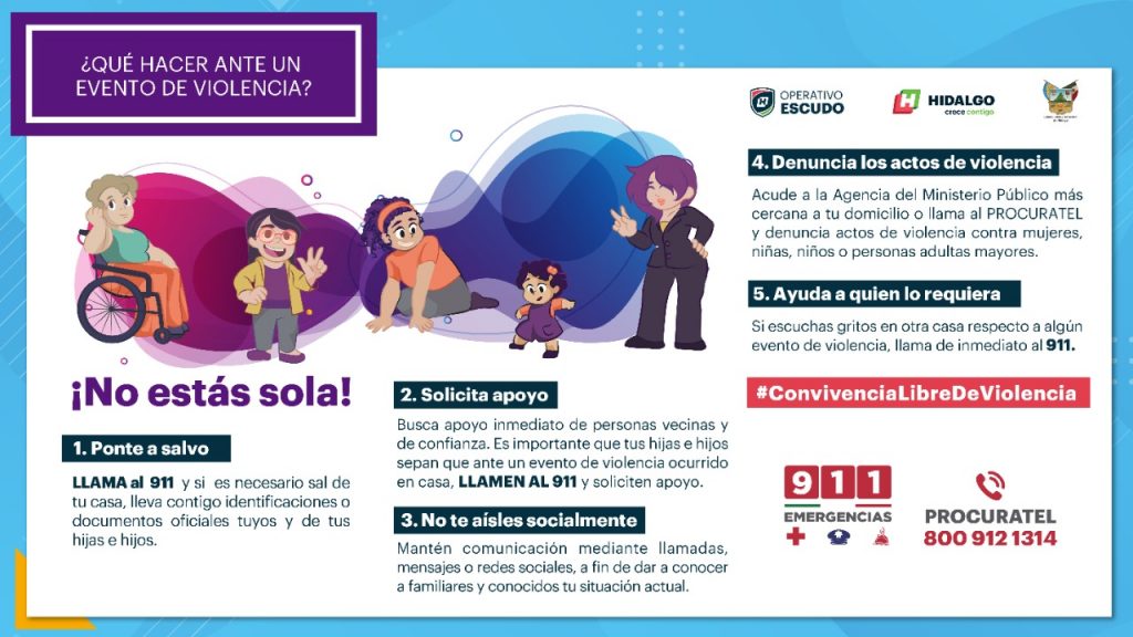 Como parte de las acciones que el Gobierno del Estado de Hidalgo generó para prevenir y atender la violencia que durante el confinamiento de la pandemia pueden vivir mujeres y niñas en sus hogares, está la puesta en marcha de los micrositios “Convivencia Libre de Violencia” y “No estás sola”.