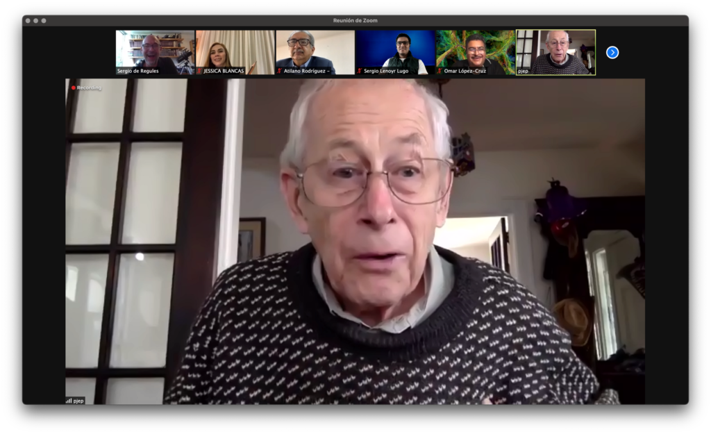 - Pachuca, Hgo.- El profesor James Peebles, Premio Nobel de Física 2019, sostuvo un diálogo con los investigadores Sergio de Regúles y Omar López Cruz; de la UNAM e INAOE, respectivamente, así como autoridades en relación a la publicación de su libro «El siglo de la Cosmología» como décimo título de la Biblioteca Científica del Ciudadano (BCC).