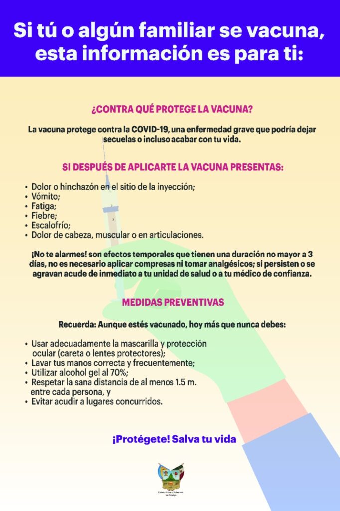 ¡No te alarmes! Son efectos temporales que tienen una duración no mayor a 3 días, no es necesario aplicar compresas ni tomar analgésicos: si persisten o se agravan acude de inmediato a tu unidad de salud o a tu médico de confianza.