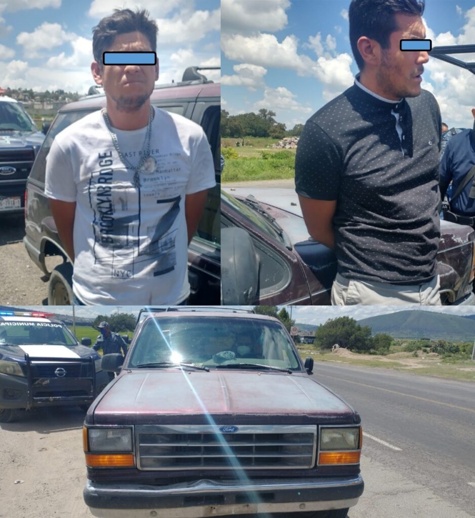Los ocupantes de la camioneta hicieron caso omiso cuando le marcaron el alto, sin embargo, los uniformados estaban alerta y rápido lograron orillarlos y someter a los ocupantes identificados por sus iniciales como C.M.Ch.Z, de 33 años, vecino de Tlajomulco, estado de Jalisco, así como a J.A.M.S, de 36 años, radicado en Tizayuca, Hidalgo.