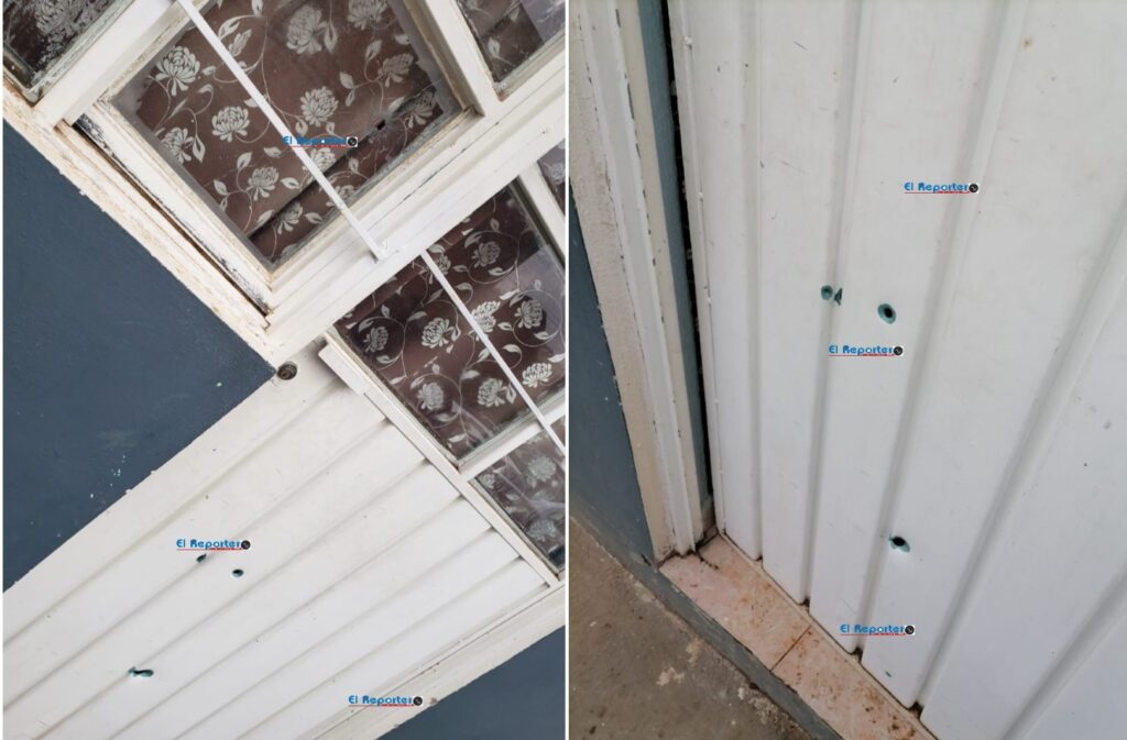 En la puerta blanca del hogar de los lesionados quedaron los orificios que causaron los agresores en so cobarde atentado.