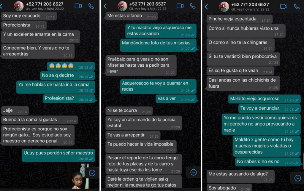 Días después, afirmó, recibió mensajes del supuesto jefe de la Policía Estatal, mismo que la busca en la patrulla, inclusive, la señora de la tienda de la esquina le comentó que la andaban buscando los Policías Estatales.