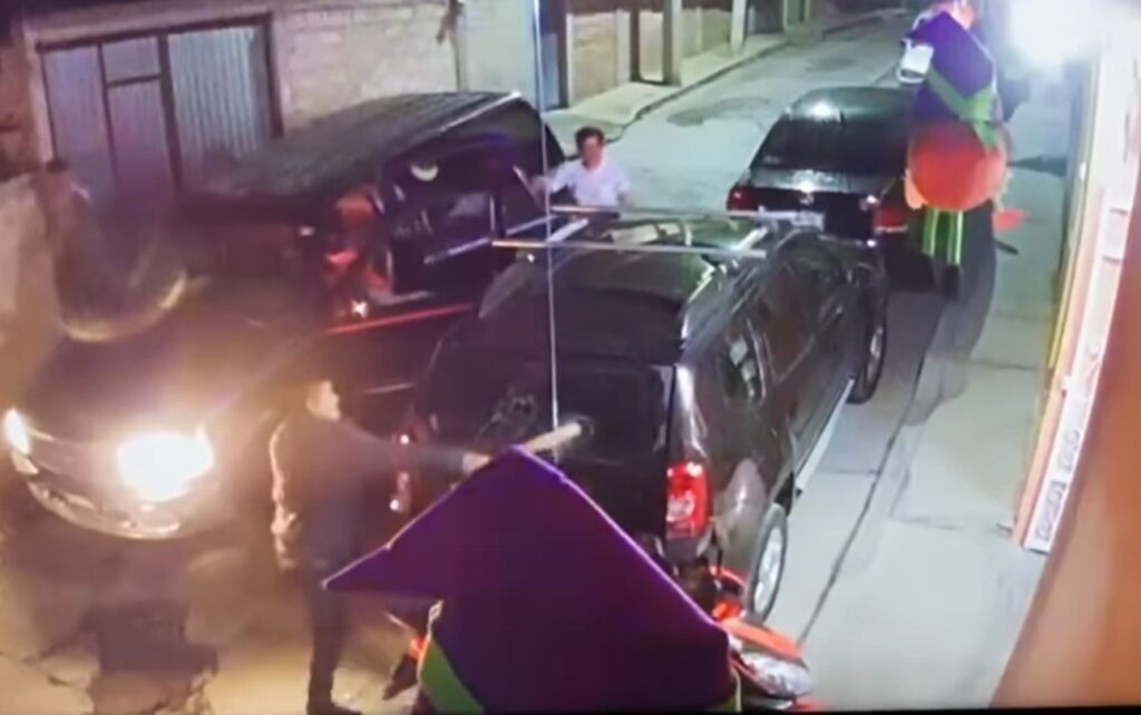 Después de hacer disparos de arma de fuego, destruir la camioneta y arrojar gran variedad de objetos contra la camioneta, el grupo de facinerosos emprende la huida.