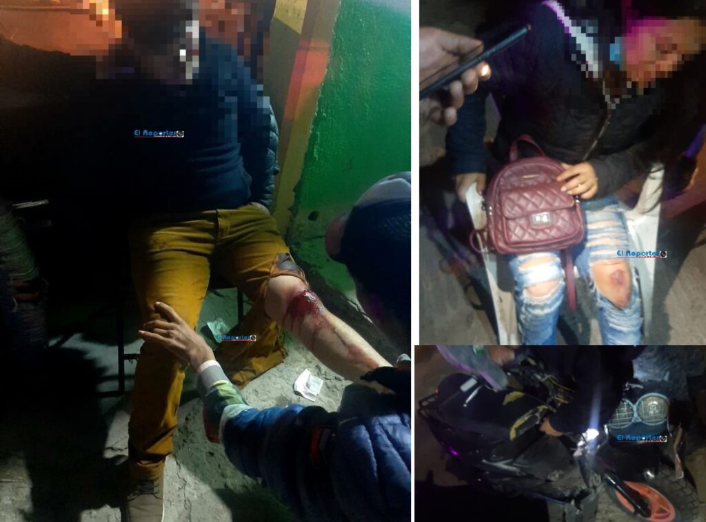 Paramédicos atendieron en el lugar a los lesionados identificados como A.J.A.N. y M.E., estos de 20 y 23 años, ambos estudiantes vecinos de la colonia magisterial.