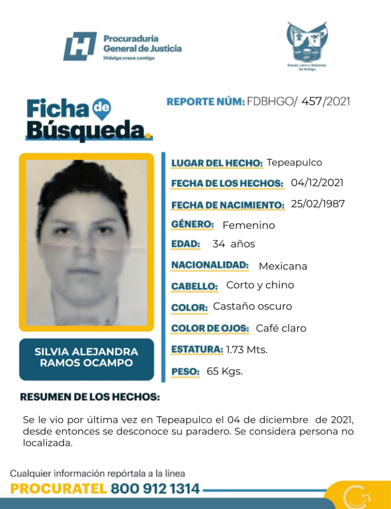 Si sabe dónde están estas personas por favor comuníquese a la Procuraduría General de Justicia de Hidalgo o comandancia de Seguridad Municipal más cercana. Usted puede ayudar a que regresen a sus hogares.