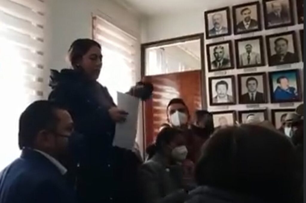 Una comisión de vecinos, a las nueve horas de hoy, ingresaron a la sala de cabildos del Palacio Municipal donde fueron atendidos por la alcaldesa Marisol Ortega López y funcionarios de primer nivel.
