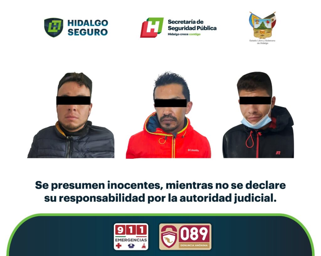 En acciones coordinadas de prevención y combate al delito, elementos de la Secretaría de Seguridad Pública de Hidalgo y de la Policía Municipal de Atotonilco de Tula aseguraron a tres personas en posesión ilegal de un arma de fuego y una camioneta con reporte de robo.