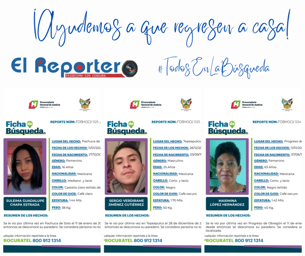 Solicitamos su amable cooperación para difundir las fichas de búsqueda y localizar a:
