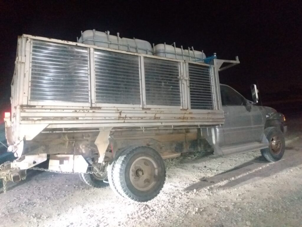 Los uniformados detectaron una camioneta tipo pipa, color blanco y negro, marca Dodge Ram 4000, misma que carecía de matrícula y sin luces, sorpresivamente se detiene y desciende un sujeto y emprende la huida corriendo.