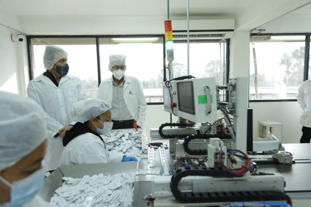 Tizayuca, Hgo.- El gobernador Omar Fayad fue testigo del lanzamiento de Neogen, prueba rápida de Covid-19 producida por Interbiol, empresa instalada en Tizayuca. Interbiol es experta, desde hace 20 años en la producción de las pruebas cromatográficas “y a partir de hoy, es la primera empresa mexicana en producir la prueba rápida para detectar Covid-19. Pero eso no es todo, ya que tienen proyectado y en trámite para autorización, la prueba de detección simultánea de influenza y Covid-19, flurona, como ya se le conoce en el mundo”, expresó.