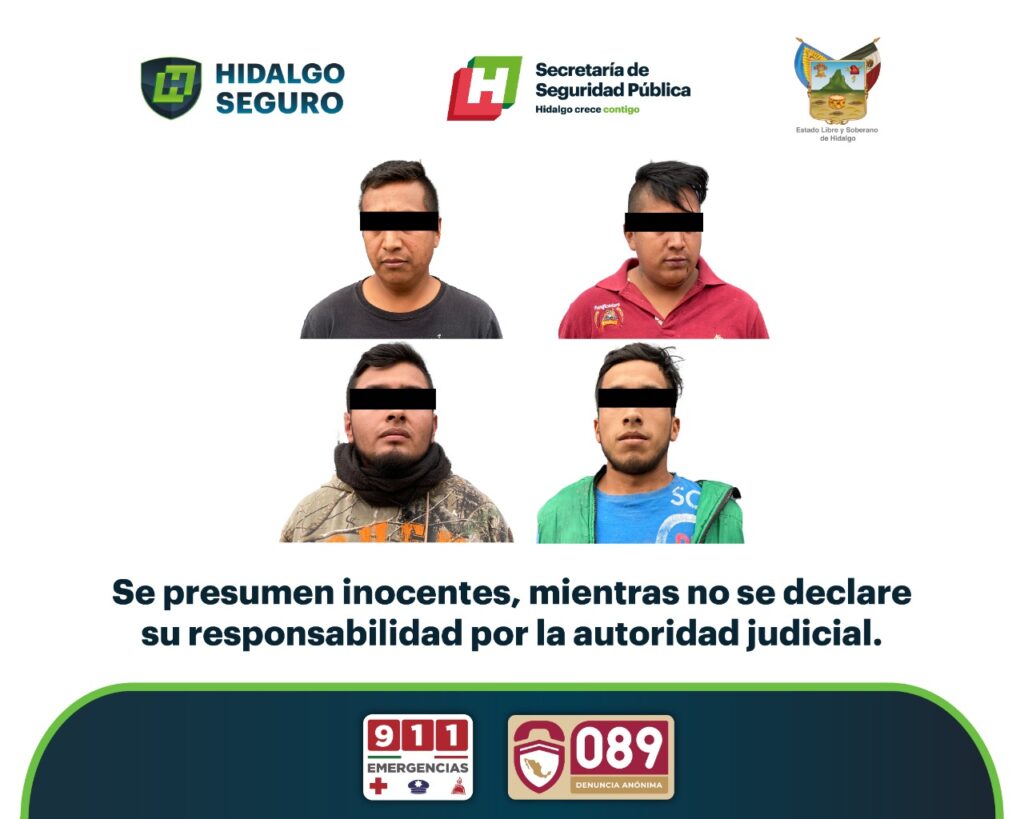 En el marco de las acciones para dar frente a la delincuencia en la región del Valle del Mezquital, la Secretaría de Seguridad Pública de Hidalgo aseguró a cuatro personas presuntamente relacionadas con hechos de violencia en el municipio de Ixmiquilpan, la tarde de este lunes.