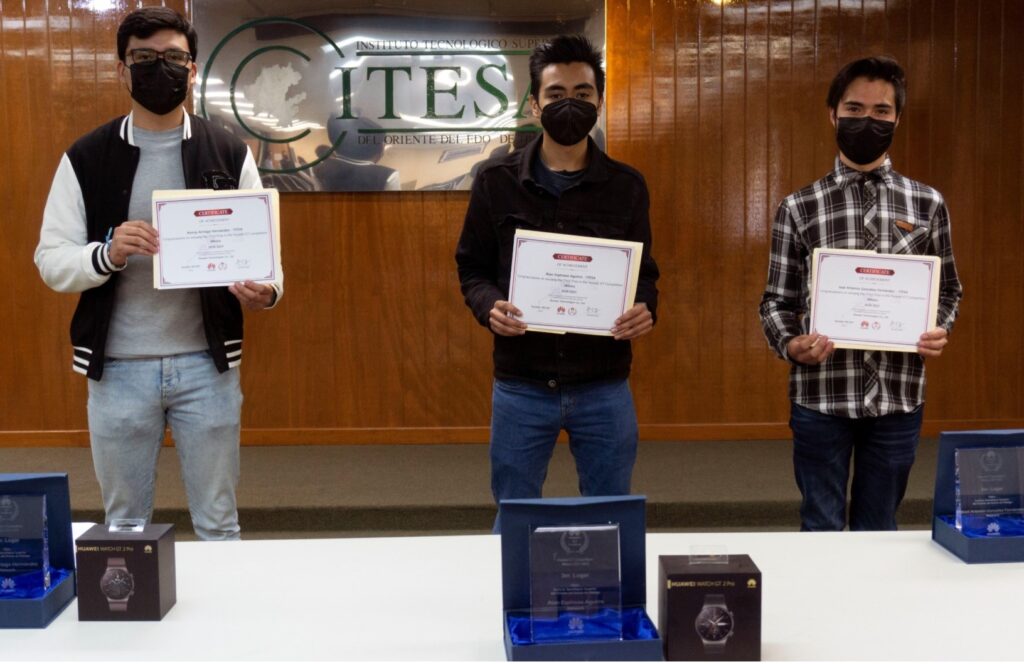 APAN, HGO.- Los estudiantes del Instituto Tecnológico Superior del Oriente del Estado de Hidalgo, Alan Espinoza Aguirre, José Artemio González Fernández y Kenny Arriaga Hernández, quienes cursan el octavo semestre del programa educativo de Ingeniería en Sistemas Computacionales, obtuvieron el “Tercer lugar” nacional en el Track Netwoek de la Huawei ICT Competition México 2021-2022.