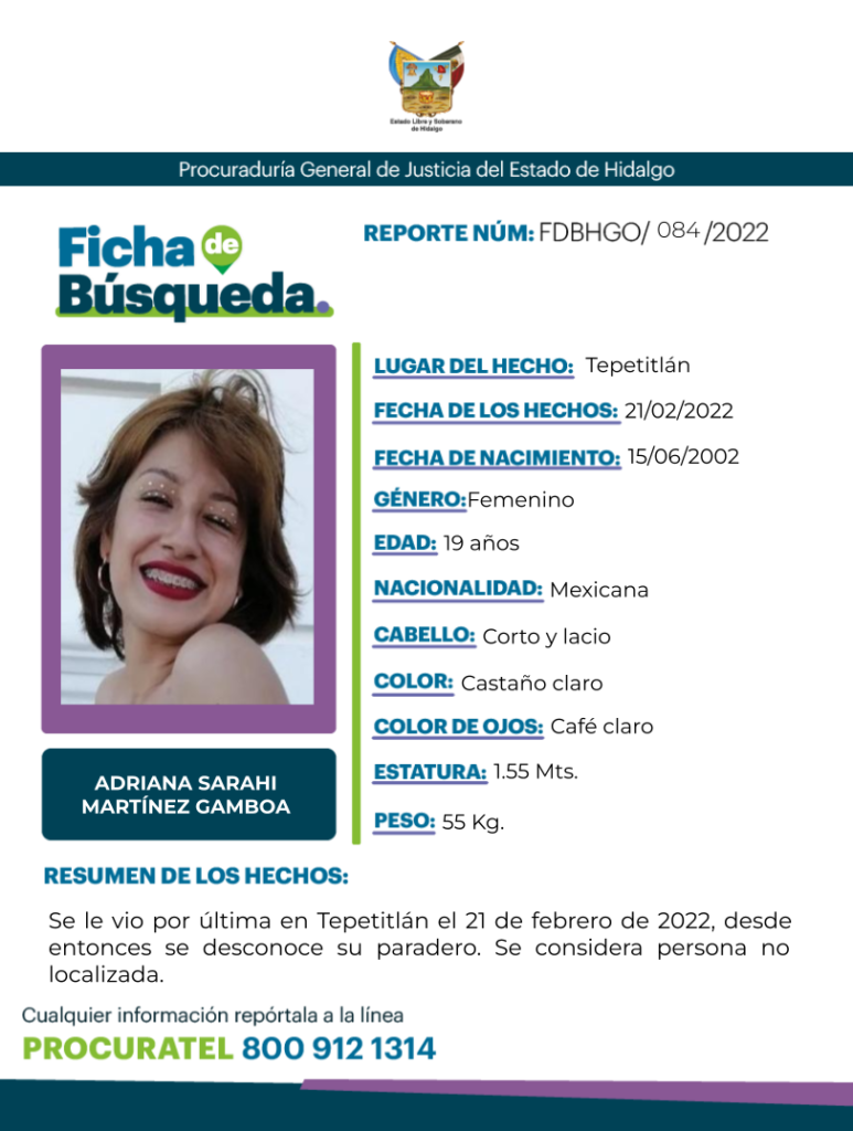 EL REPORTERO invita a sus lectores, seguidores y amigos en general a compartir esta publicación para colaborar en la localización de las siguientes personas que son buscadas por sus seres queridos en diferentes puntos de Hidalgo.