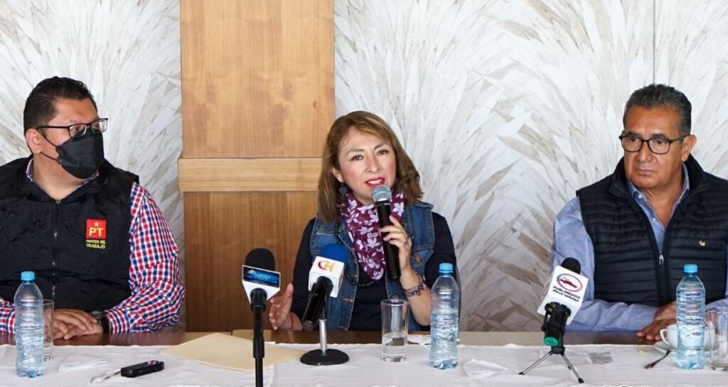 Así lo dieron a conocer en conferencia de prensa Sandra Ordóñez Pérez, presidenta del Comité Ejecutivo Estatal de Morena Hidalgo; Sergio Hernández Hernández, presidente del Comité Directivo Estatal del Partido Nueva Alianza de Hidalgo; Francisco León Castillo, representante del Partido del Trabajo en Hidalgo; Honorato Rodríguez Murillo, secretario de organización del Partido Verde Ecologista de México, y Natividad Castrejón Valdez, coordinador general de campaña.