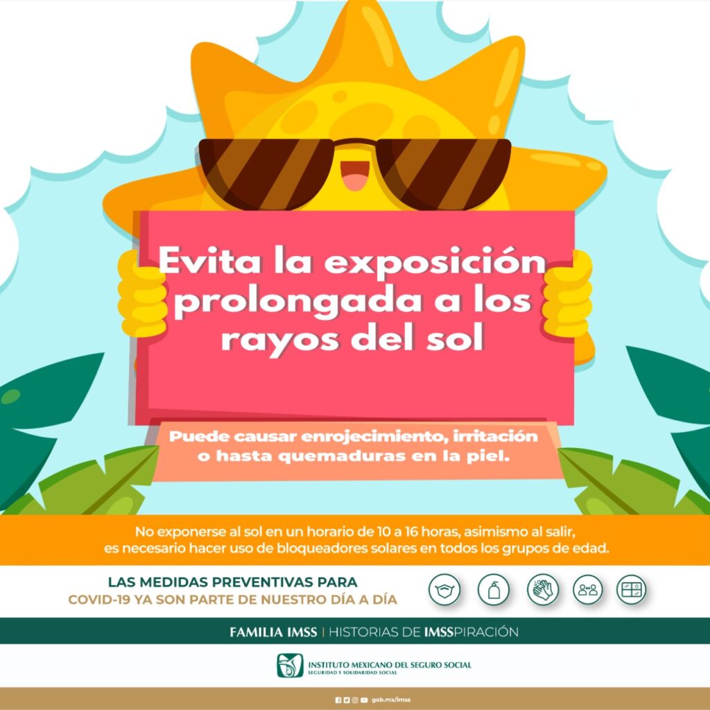 Se recomienda no exponerse al sol en un horario de 10 a 16 horas, asimismo al salir, es necesario hacer uso de bloqueadores solares en todos los grupos de edad.