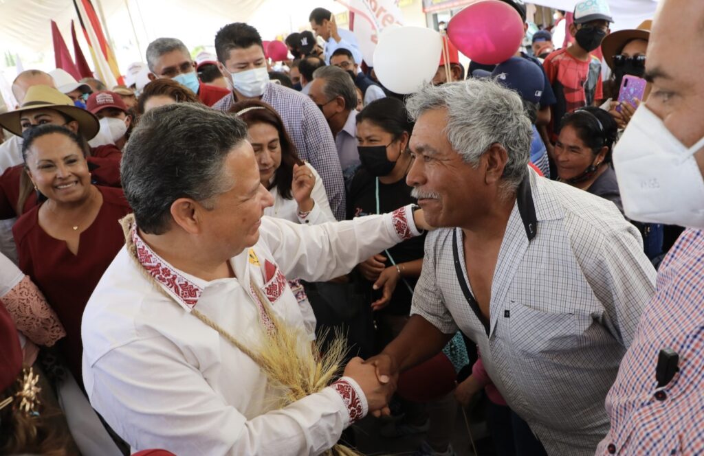 Tlaxcoapan, Hidalgo.- Julio Menchaca Salazar, aspirante a gobernador por Morena, Partido Nueva Alianza Hidalgo (PNAH) y Partido del Trabajo (PT), realizó un acto proselitista en Tlaxcoapan, donde se comprometió a devolverle al municipio el potencial agrícola que lo caracterizó hace varios años.