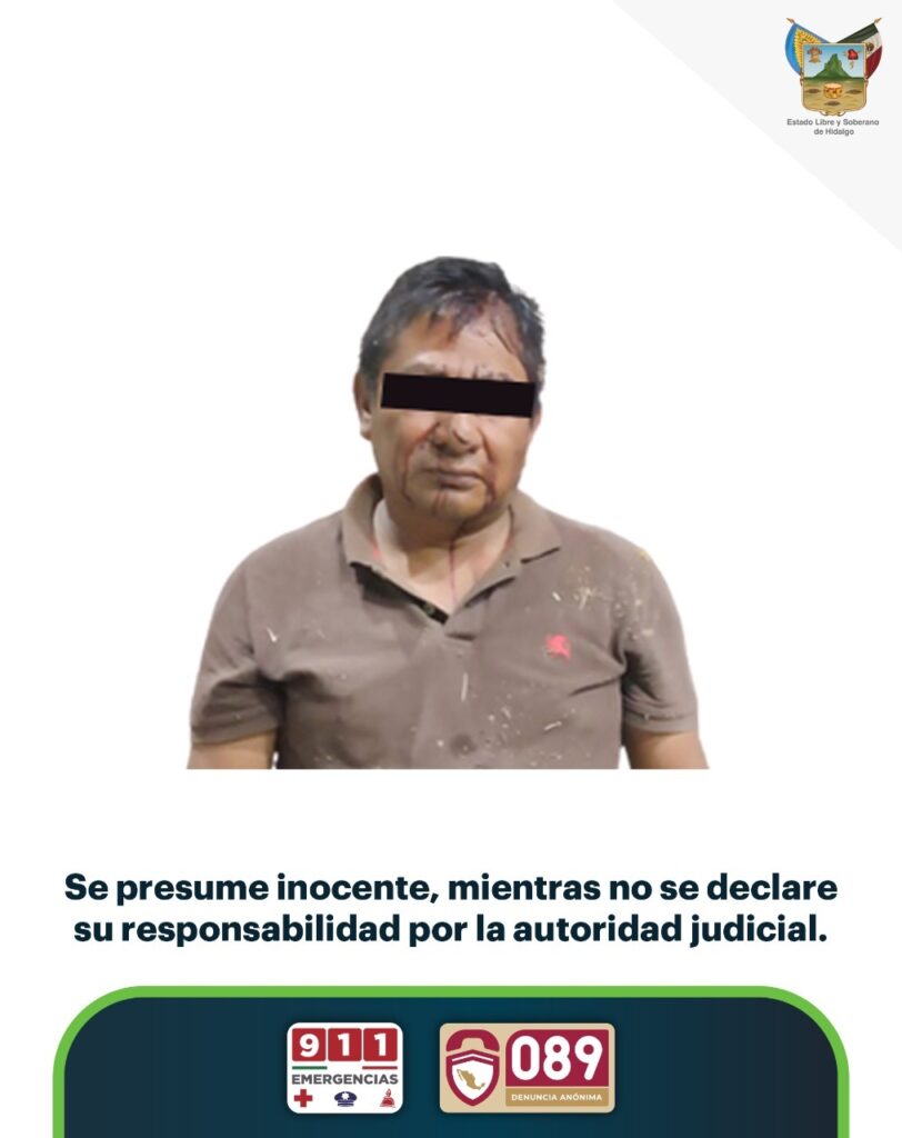 Una llamada de alertamiento al C5i de Hidalgo, a través del 911 de Emergencias, en inmediaciones de la Escuela Normal del Valle del Mezquital, desplegó a personal operativo de la Policía Estatal y con ello fue intervenido quien se identificó como J.C.C.V., de 44 años.