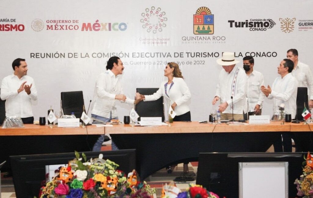 • El encuentro, al igual que el Tianguis Turístico Acapulco 2022, tuvo como anfitriona a la gobernadora de Guerrero; así como la intervención de los gobernadores de Quintana Roo, coordinador de la Comisión de Turismo; el mandatario de Yucatán, vicecoordinador de la Comisión de Turismo, y el titular del Ejecutivo de Oaxaca, vicepresidente de la Conago.