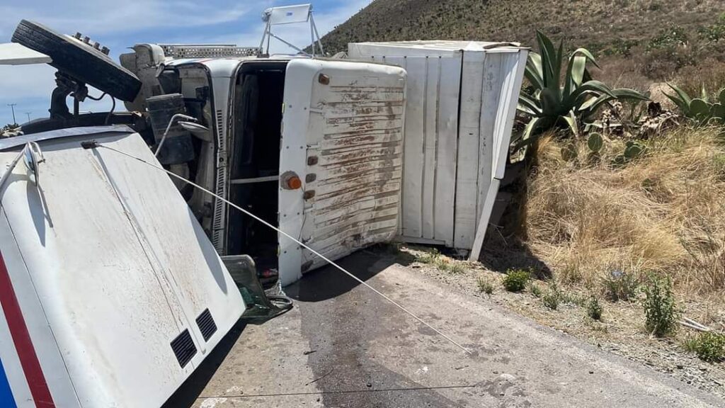 Atienden el hecho de tránsito y en el lugar encontraron volcado y destruido un camión que viajaba de vació, color blanco, placas XB 87733 del estado de Tlaxcala.