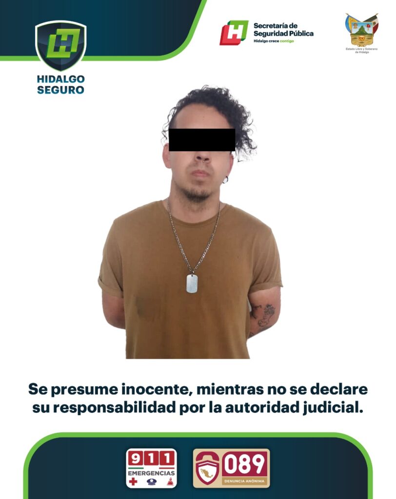 A través de un despliegue de la Secretaría de Seguridad Pública de Hidalgo, Guardia Nacional y Policía Municipal de Zempoala se logró la intervención de quien se identifica como J.L.A., de 23 años.