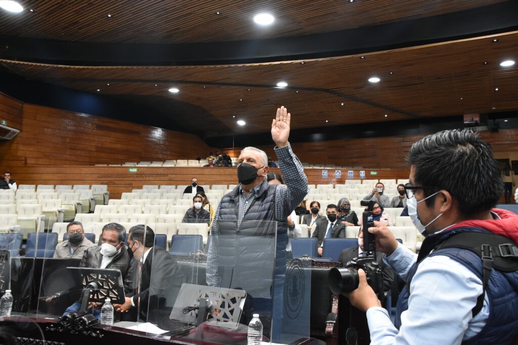 Para finalizar la sesión, las y los diputados Octavio Magaña, Michelle Calderón, Miguel Martínez, Noé Hernández, Osiris Leines, Citlali Jaramillo, Lisset Marcelino, Rodrigo Castillo, Lorena Hernández, Roberto Rico y Fortunato González tomaron protesta como integrantes de la Diputación Permanente que fungirá durante el receso correspondiente al Segundo Periodo Ordinario de Sesiones del Primer Año de Ejercicio Constitucional en los cargos de presidente, vicepresidenta, secretario I y II, vocales I, II, III, IV, V y VI, y suplentes I y II, correspondientemente.