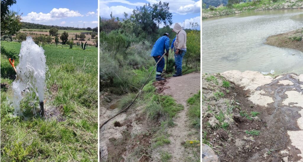 Procedieron a investigar y se dieron cuenta que el referido jagüey era abastecido por tres tomas clandestinas de agua potable sacadas de las líneas de conducción 4-T estación 8, 3-T ubicado en Corralillos y 1-T de Francisco Sarabia.