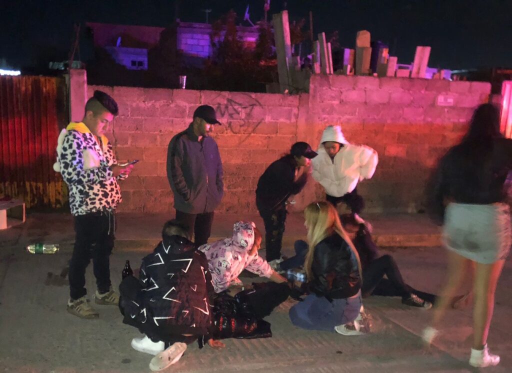 Los uniformados acuden al lugar y localizaron a nutrido grupo de jóvenes que rodeaban a cuatro jóvenes malheridos que estaban tirados en el piso, después de haber sido atropellados, presuntamente por una camioneta Ford, tipo Explorer, color azul o verde.