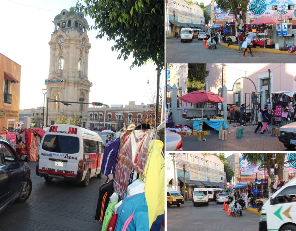 Las esquinas de la calle Ocampo y Matamoros, Morelos e Hidalgo, se encuentra saturado de vendedores ambulantes que ofertan ropa, perfumes “piratas”, polvorientos alimentos, objetos chinos y algunas otras chacharas, así tienen convertido el centro histórico en un sucio tianguis.