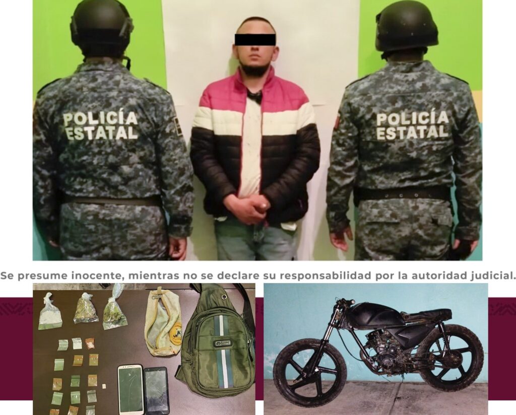 Fue a la altura de la carretera federal México – Laredo, en la localidad Puerto Horcones, donde los agentes estatales intervinieron a un joven a bordo de una motocicleta, a quien le detectaron diferentes paquetes y envoltorios con probable droga.