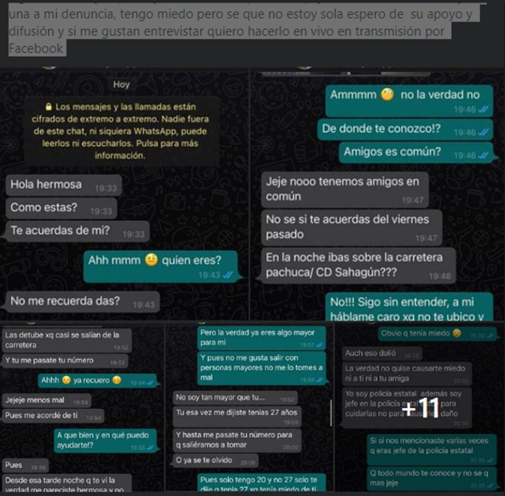 En el mes de octubre del año 2021, una jovencita contó la pesadilla que vivió a manos de un supuesto alto mando de la Policía Estatal, mismo que presumió no ser un “gato”, pues tiene estudios de maestría en derecho penal y, en ese entonces dijo ser alto mando de la Policía Estatal.