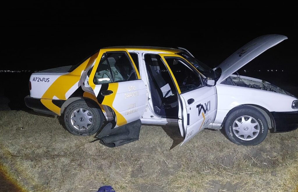 El vehículo robado es un taxi Nissan Tsuru, modelo 2012, matrícula A724FUS, mismo que fue localizado en un camino de terracería donde lo dejaron con las puertas abiertas.