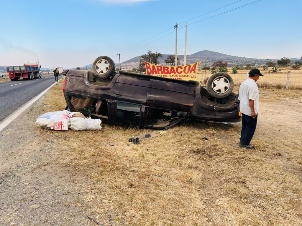 En el lugar encontraron volcada y con las llantas hacia arriba una marca Chevrolet, color vino, placas NMB-67-93 del Estado de México, quedó fuera de la carpeta asfáltica y los lesionados esparcidos.
