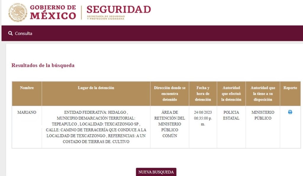 Se dijo que había sido la Policía Estatal de Apan quien realizo la detención, sin embargo, no ha sido precisado, tampoco el delito, únicamente ha quedado claro que está a disposición del agente del Ministerio Público del fuero común.