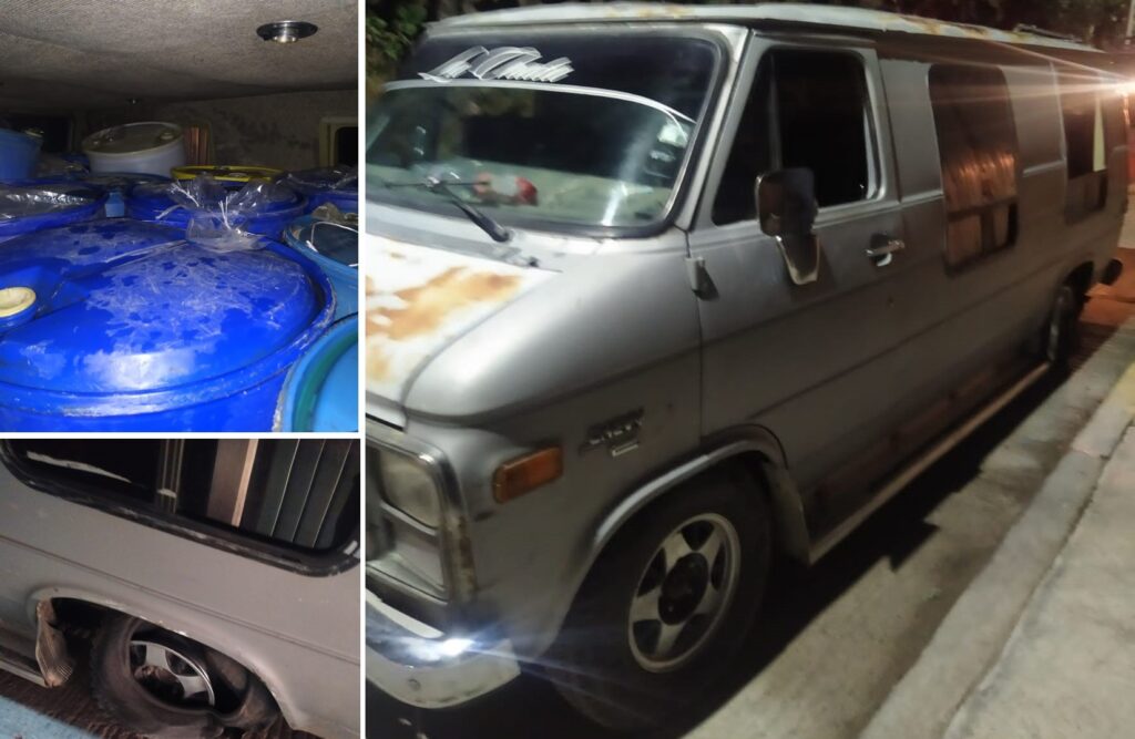 Oficiales de Seguridad Municipal dieron a conocer que, aproximadamente a las 02:10 horas de hoy, realizaban un recorrido de vigilancia por la colonia El Calvario, pero al llevar a la avenida Felipe Ángeles, colonia Plaza Vieja observaron una camioneta gris, tipo panel, con ventanillas en los costados y por las cuales se observan contenedores.