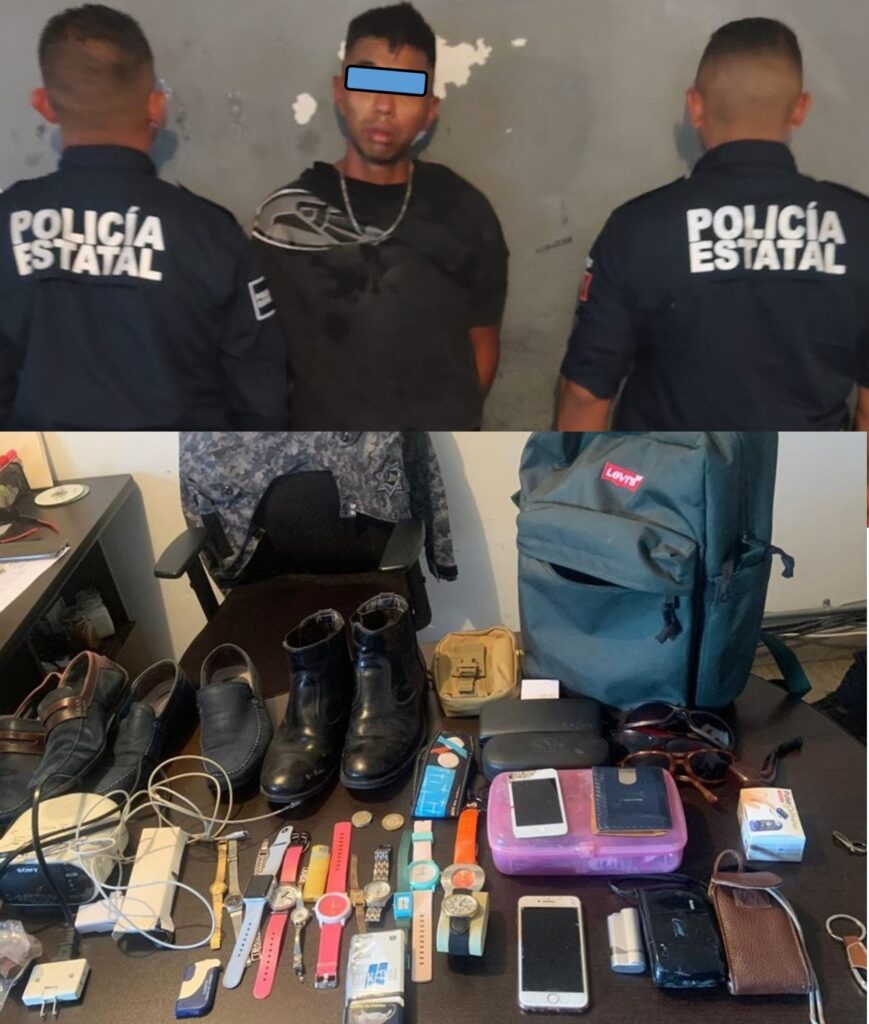 Agentes de la Policía Estatal atienden el reporte y capturan en flagrancia a un sujeto identificado como Eduardo “N”, mejor conocido como “El Chipotes”, mismo que tenía en su poder múltiples objetos producto del botín que supera los 30 mil pesos.