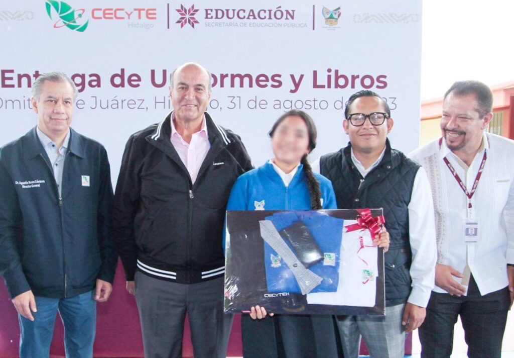 PACHUCA, Hgo. – Con una inversión superior a los 50 millones de pesos, el Gobierno de Hidalgo, que encabeza Julio Menchaca, beneficia con libros y uniformes a 26 mil 297 jóvenes que son atendidos en los planteles del Colegio de Estudios Científicos y Tecnológicos del Estado de Hidalgo (CECyTEH).