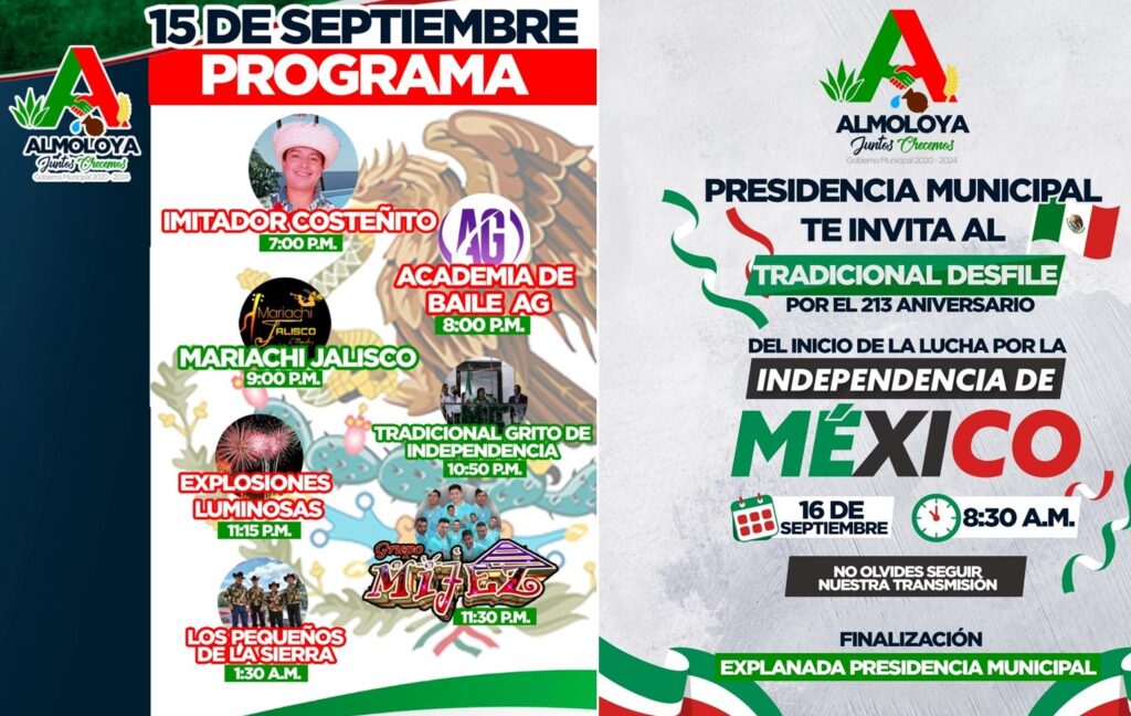 ALMOLOYA, Hgo. – Una gran serie de actividades se han programado para celebrar el 213 aniversario del inicio del movimiento de la independencia de México.