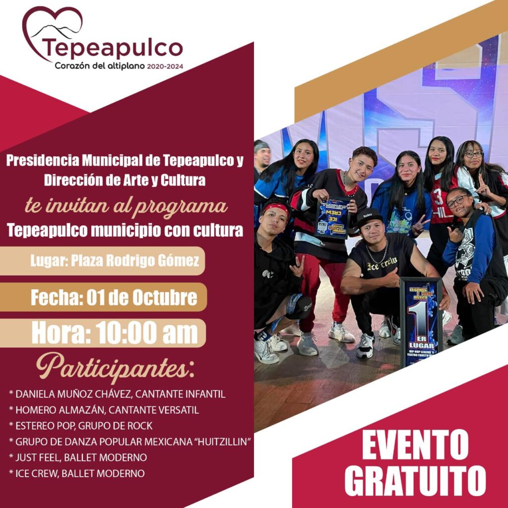 TEPEAPULCO, Hgo. – La Presidencia Municipal hace una atenta invitación a la población en general para que asista y se divierta en el programa Domingo Cultural.