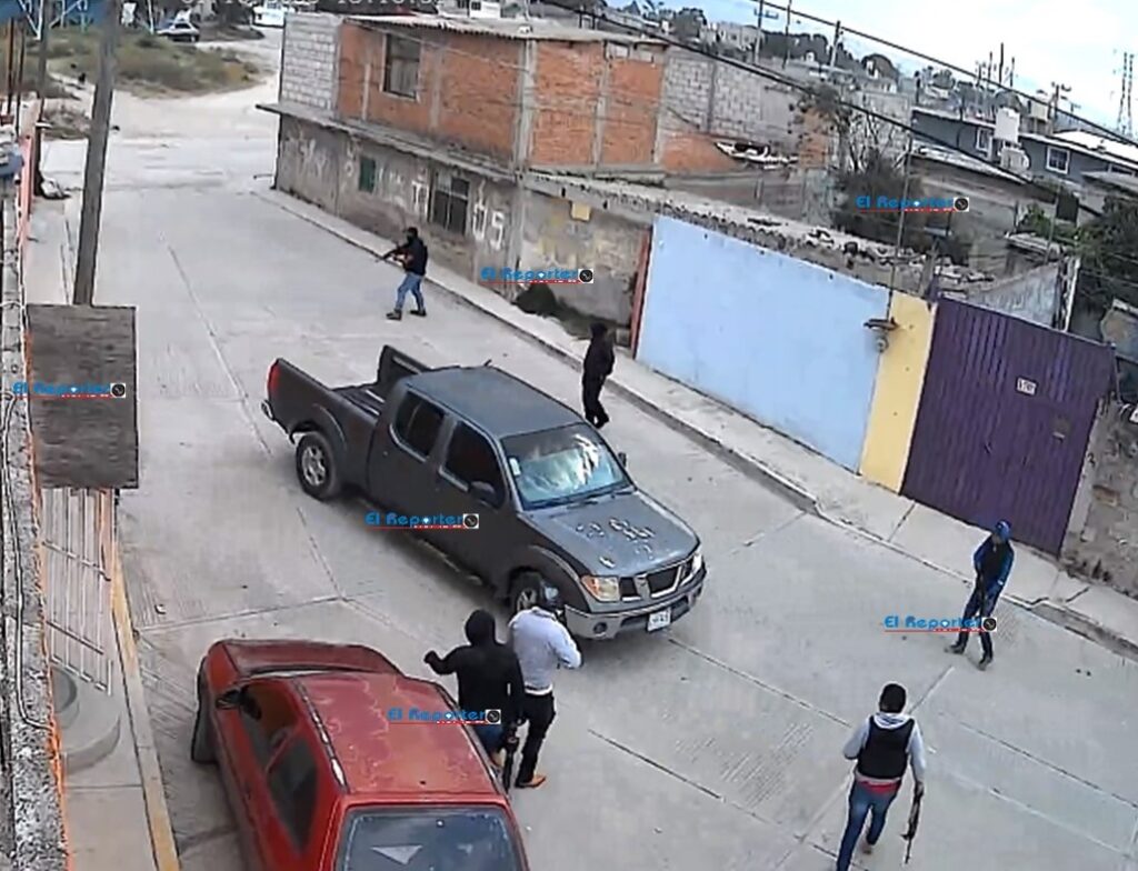 Seguidores de EL REPORTERO dieron a conocer que, la tarde del domingo, lentamente, una camioneta pick up, color gris oscuro, ingresó y avanzo lentamente por la calle Huejutla, en la colonia Rojo Gómez de Ciudad Sahagún, Hidalgo, Tres sujetos armados caminaban ligeramente atrás del vehículo.