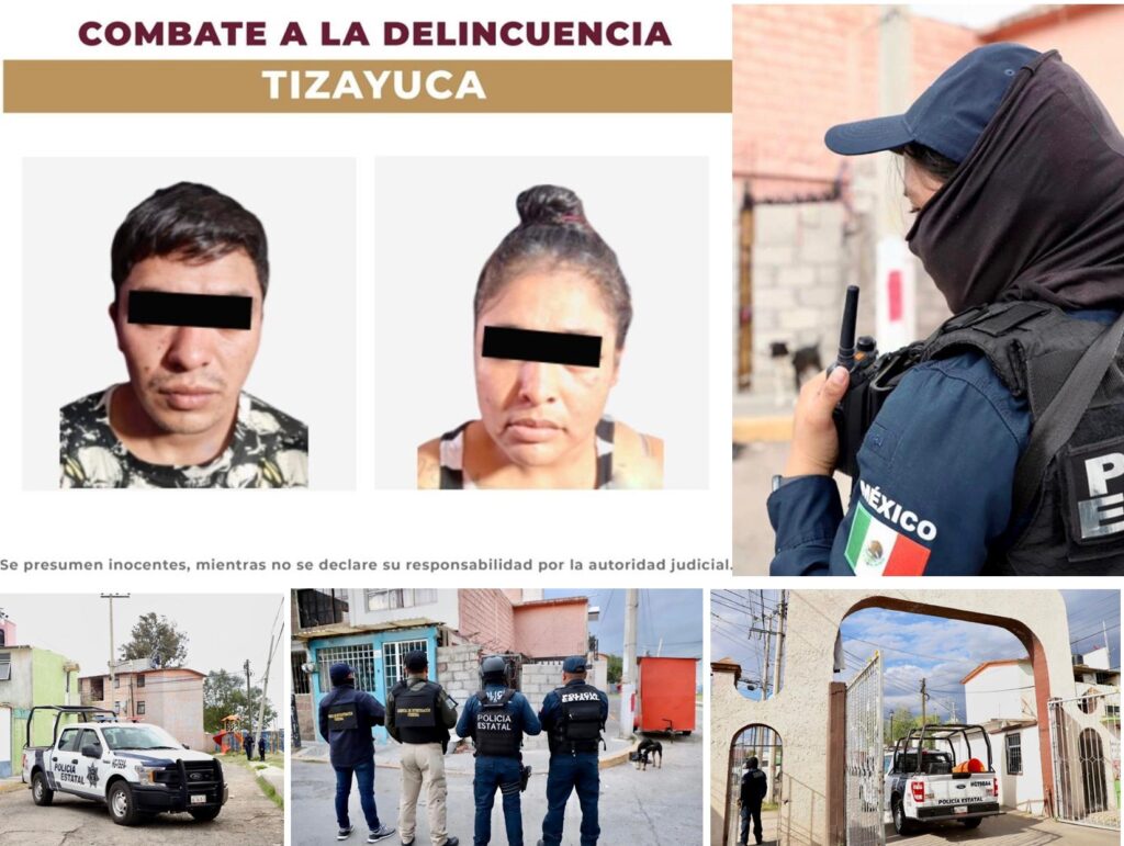 Mediante labores de inteligencia la SSPH, en conjunto con la Procuraduría General de Justicia del Estado de Hidalgo (PGJEH), llevaron a cabo un operativo policial en el fraccionamiento Las Campanas de ese municipio, para cumplimentar una orden de cateo que permitió el aseguramiento de una mujer identificada como A.V.B., así como de un sujeto de nombre L.G.R.S., quienes almacenaban 833 dosis de marihuana.