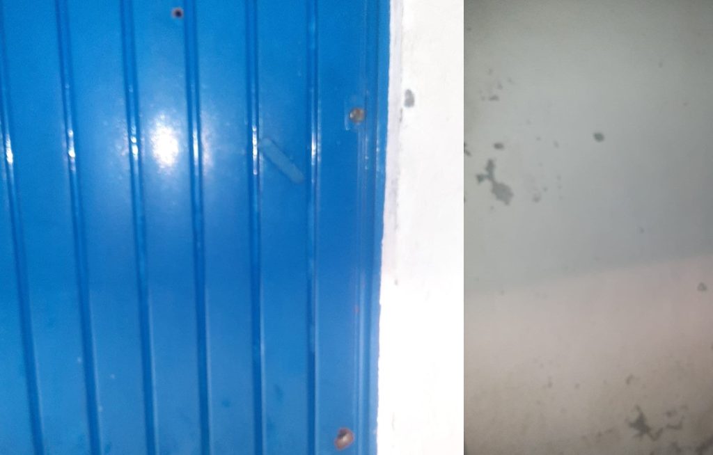Varios proyectiles de arma de juego se impactaron en el portón de acceso, columnas y pared de la empresa Jomin Steel Engineering S. de R.L. de C.V.