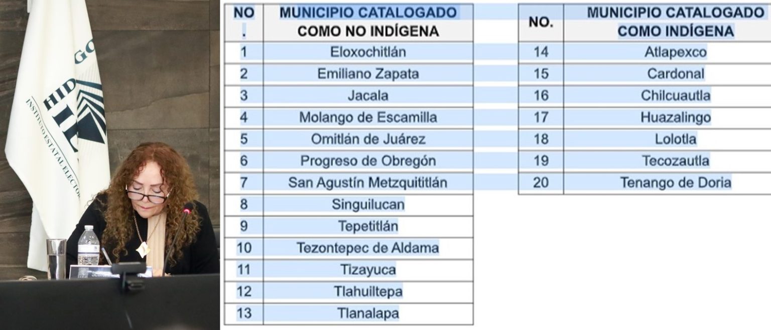 Otra acción que se destaca es que el IEEH implementará, para el caso de la renovación de los Ayuntamientos, una Acción Afirmativa para garantizar el acceso de al menos 20 mujeres al cargo de Presidentas Municipales, medida que se consideró idónea, proporcional y para este Proceso Electoral como un piso para alcanzar progresivamente la paridad sustantiva. Por tanto, en los 20 municipios que a continuación se enuncian, deberá realizarse una postulación exclusiva para mujeres por parte de los Partidos Políticos, Coaliciones, Candidaturas Comunes, Candidaturas Independientes e Independientes