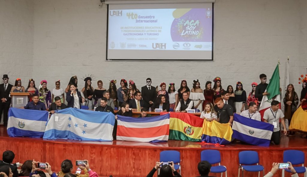 PACHUCA, Hgo. – Bajo el lema: «Somos el Sabor del Mundo, Acá Soy Latino”, el Cuarto Encuentro Internacional de Instituciones Educativas y Profesionales Latinos de Gastronomía y Turismo, llegó a la Universidad Autónoma del Estado de Hidalgo (UAEH), con el respaldo de la Secretaría de Turismo de Hidalgo, que recibió a las y los participantes de este evento.