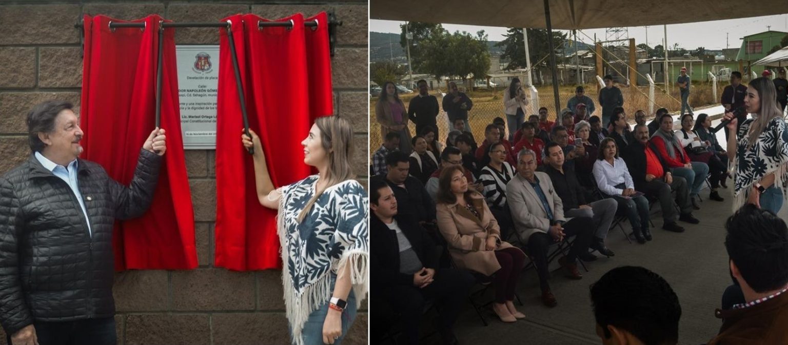Ciudad Sahagún, Hgo.- “Es un honor que esta calle transitada por los trabajadores lleven su nombre, porque los compañeros mineros han sido el motor de este municipio y grandes aliados estratégicos del proyecto de transformación de este municipio”, resaltó Marisol Ortega López, presidenta municipal de Tepeapulco durante la develación de la placa conmemorativa de la calle que llevará el nombre del senador Napoleón Gómez Urrutia ubicada en la colonia Legaspi, de Ciudad Sahagún.
