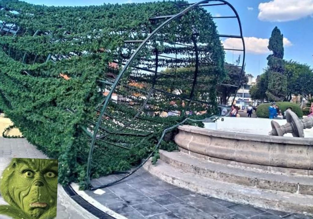 Hay quienes aseguran que el colapso del pino gigante que sostendría grandes esferas y luces multicolores se cayó por fuentes vientos, eso es falso, el clima estuvo tranquilo, si quieren evadir su responsabilidad mejor sería que culpen al Grinch de pretender robar la navidad de los apanenses.