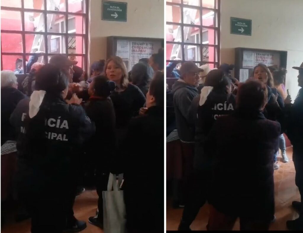 Durante la manifestación, se dio un zipizape entre una inconforme y una oficial de seguridad municipal, en un video se muestra que se agarraron a manazos sin que el asunto pasara a mayores porque las separaron.