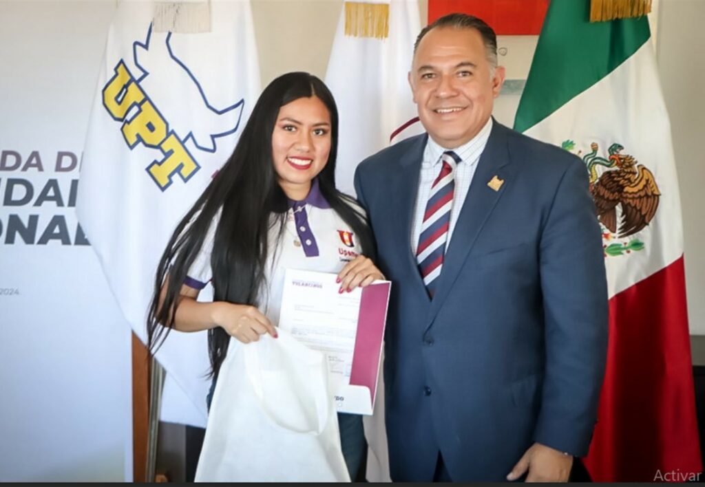 Señaló que por primera vez la UPT recibe a integrantes de la UPEMOR, de los cuales: cinco continuarán con sus estudios en Ingeniería en Electrónica y Telecomunicaciones, dos en Ingeniería Industrial y uno en Licenciatura en Administración y Gestión Empresarial, quienes han demostrado ser estudiantes destacados en los diferentes programas educativos, a los que se encuentran inscritos.
