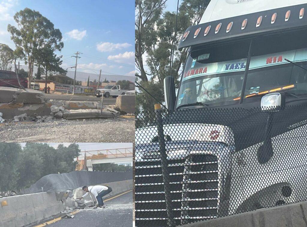 TIZAYUCA, Hgo. – Pesado tractocamión, la tarde de hoy, golpeó y destruyó el muro de contención de la autopista México-Pachuca.